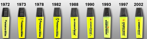 • С самого начала флуоресцентные чернила позволили выделять важные отрывки текста, а не подчеркивать их. Вскоре легкая «подсветка» текста одним штрихом, а не его точное подчеркивание, стало обычной практикой. Со временем привычка превратилась в моду, сделав текстовыделитель одним из самых успешных продуктов компании. STABILO BOSS и по сей день считается эталоном качества и остается бестселлером на протяжении 40 лет.